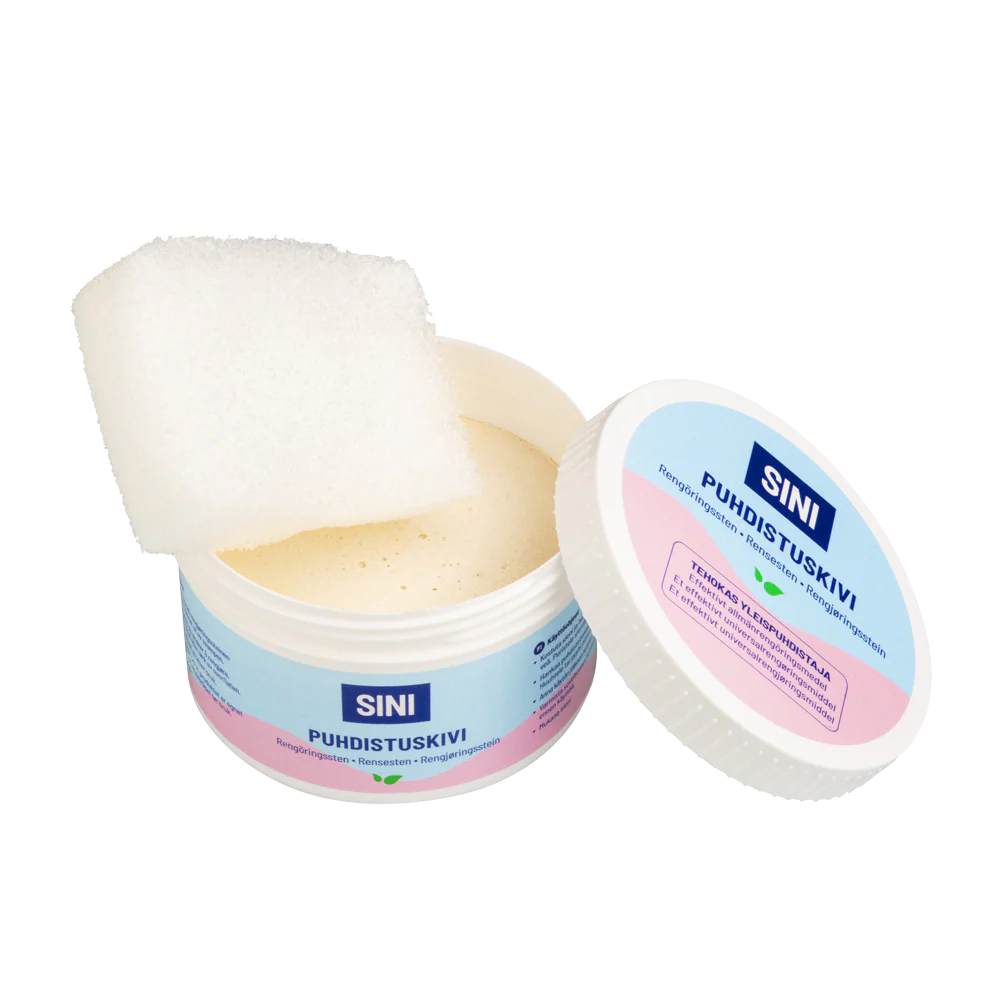 Puhdistuskivi on ekologinen ja tehokas puhdistusaine kodin sisä- ja ulkotiloihin. Se on todella monipuolinen kodin yleispuhdistaja. Puhdistuskivellä puhdistat hankalatkin tahrat ja pinttyneen lian esimerkiksi kylppärin ja keittiön pinnoilta.