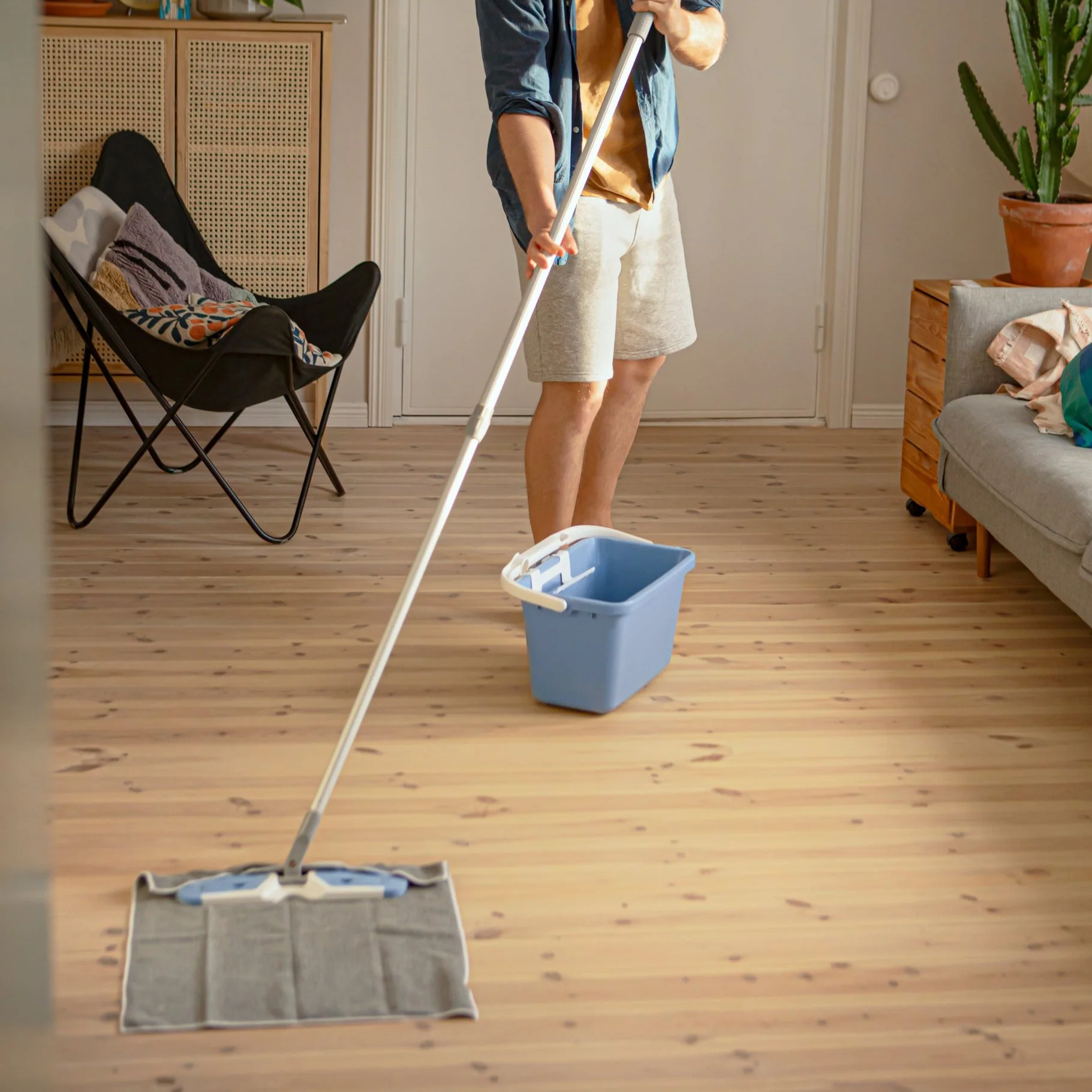 - Liitä teleskooppivarteen haluamasi siivousväline: vaihtoehtoja on vaikka kuinka paljon Monitoimimopista Kylppäriharjaan tai Pölymiekkaan.
